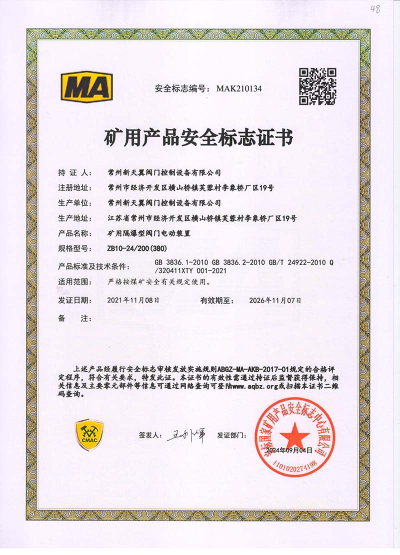 礦用產品安全標志證書ZB30-24 200(660)